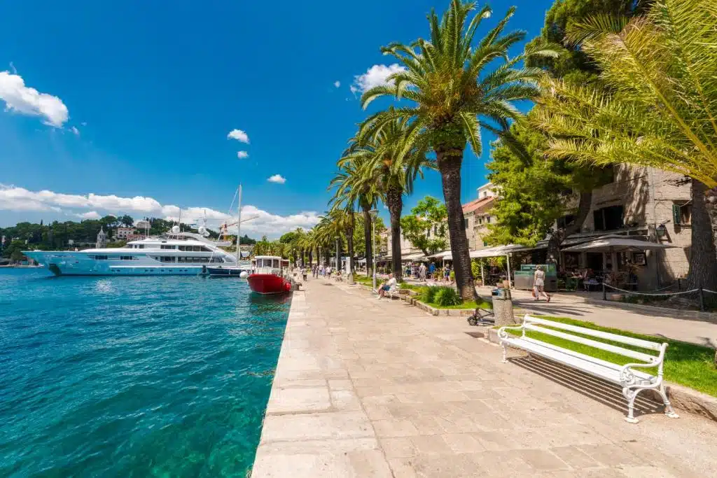 Cavtat’s waterfront promenade is one of its most enchanting features. Lined with palm trees, cafes, and restaurants, this scenic walkway offers stunning views of the turquoise sea and luxury yachts docked at the marina. It’s the perfect spot for a leisurely stroll, a romantic evening, or simply enjoying a coffee by the water.